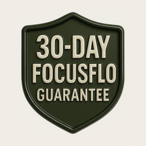 Backed by our 30-Day Elite Focus Guarantee: Try FocusFlo risk-free. If you don’t feel sharper, clearer, and more productive in 30 days, we’ll refund you.